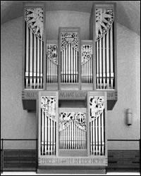 Orgel mit 18 Registern auf zwei Manualen und Pedal.