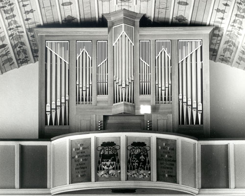 Orgel mit 17 Registern auf zwei Manualen und Pedal.