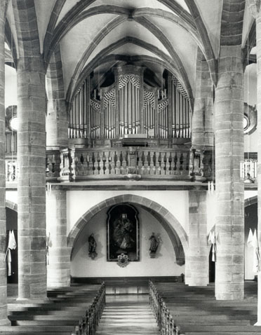 Orgel mit 26 Registern auf zwei Manualen und Pedal.