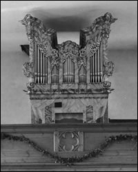 Orgel mit 18 Registern auf zwei Manualen und Pedal.