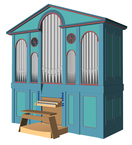 Orgel mit vierzehn Registern auf zwei Manualen und Pedal