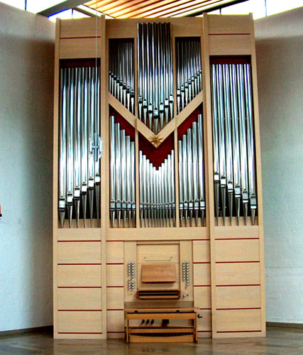 Orgel mit 29 Registern und drei Transmissionen auf zwei Manualen und Pedal