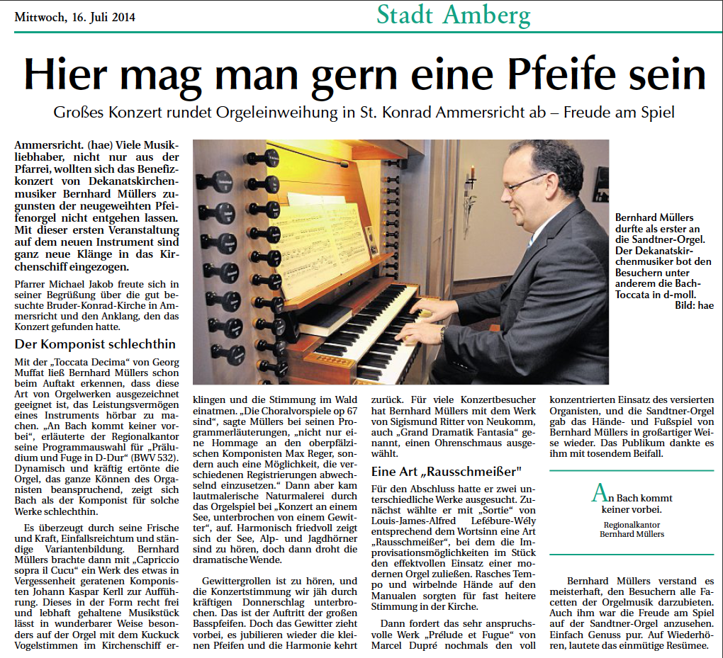 > Bericht bei Oberpfalznetz.de: Pfarrei St. Konrad feiert ihre neue Sandtner-Orgel